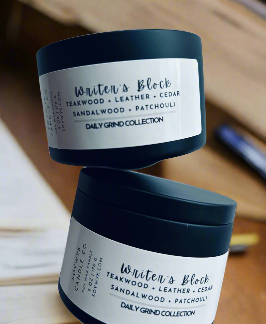 Unleash your creativity and banish writer's block with our Writer's Block Premium Soy Wax Candle. The masculine and woody scent is a perfect blend of teakwood, leather, cedar, amirs, dark musk, sandalwood, and patchouli. Let the sophisticated fragrance notes transport you to a world of inspiration and imagination.